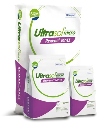 Ultrasol® micro Rexene® Mn13 to wysokiej jakości nawóz mikroelementowy, zawierający 13% manganu (Mn) w formie chelatu EDTA. Dzięki stabilnej i łatwo dostępnej formie, produkt skutecznie zapobiega i koryguje niedobory manganu w uprawach rolniczych, sadowniczych i warzywniczych. Jest całkowicie rozpuszczalny w wodzie, wolny od pyłu i bezpieczny w stosowaniu — zarówno w fertygacji, jak i w opryskach dolistnych.