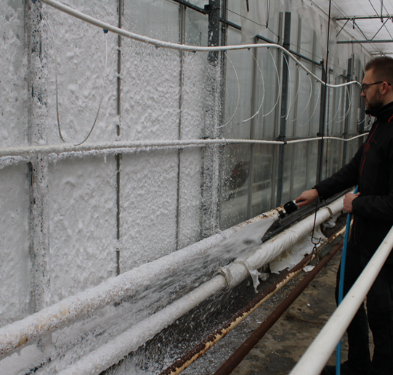 mycie powierzchni w szklarniach i magazynach,